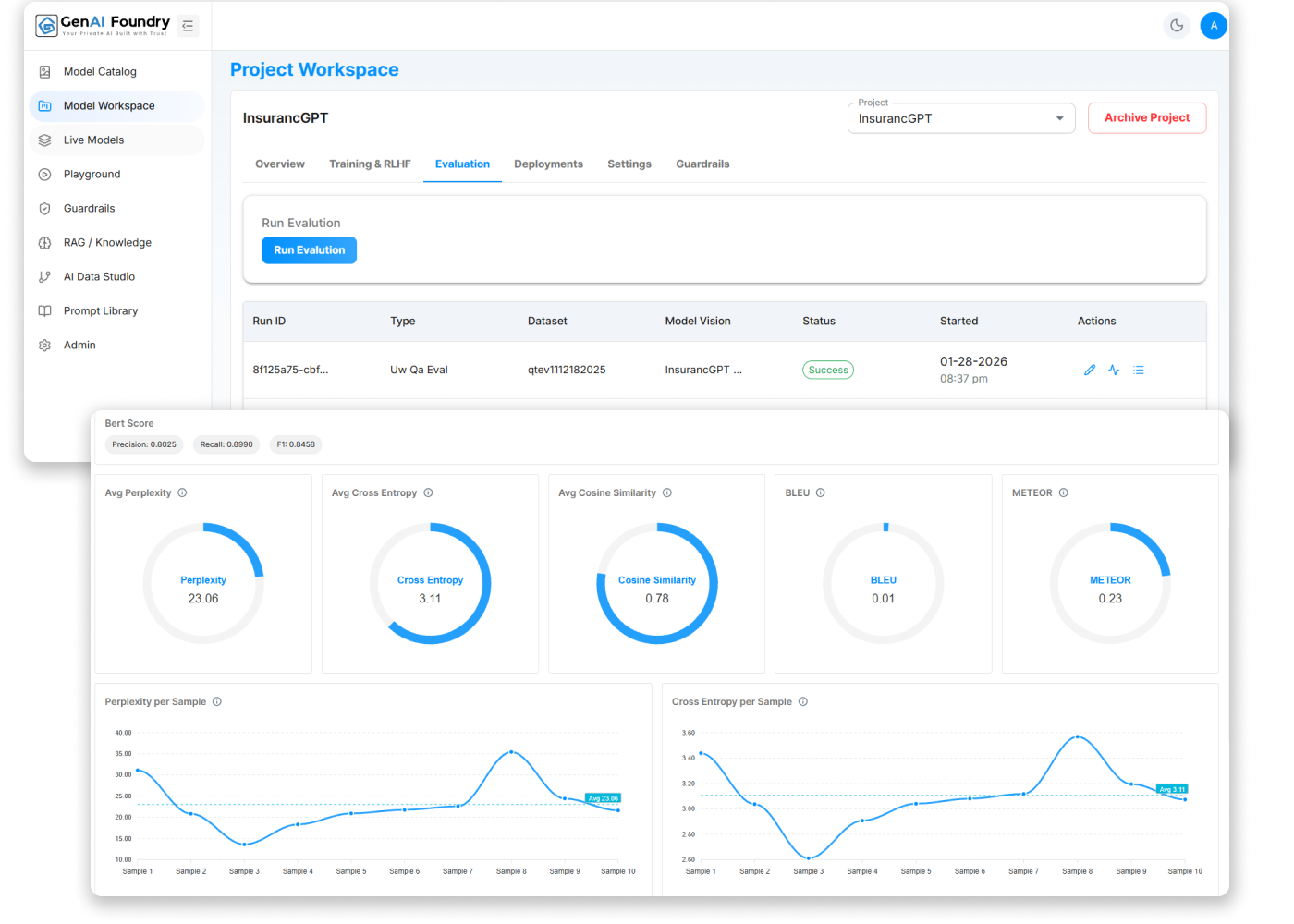 Performance, drift, bias, and risk signals are measured against defined thresholds with full traceability. Every output remains observable and auditable over time.