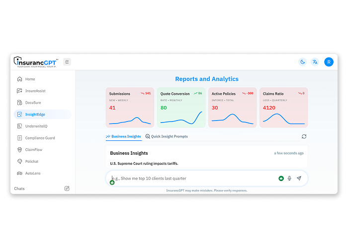 Evaluate AI ReadinessInsurancGPT delivers insurance-native AI across underwriting, claims, and compliance