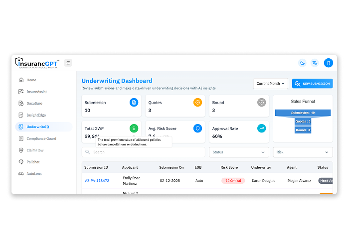 InsurancGPT brings secure, explainable AI to underwriting, claims, documents, and insights—deployed on your infrastructure and governed by your rules.